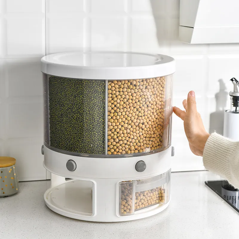 Food Storage Box Rotatable Multi-functional Dividing Rice Bucket Household Insect and Moisture Proof Grains Organizer