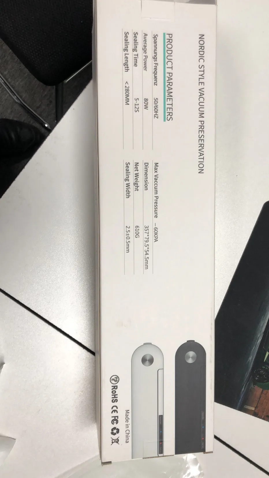- Operation: Fully automatic one-touch vacuuming and sealing.
