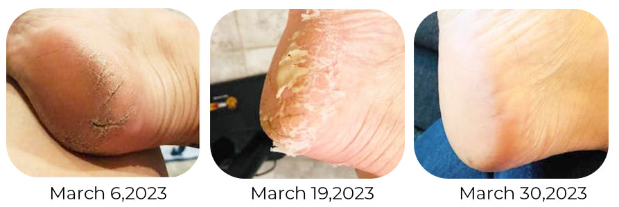 "I've been using the foot callus spray remover, which has become an integral part of my self-care routine. It offered a soothing and revitalizing experience, relieving the discomfort caused by cracked skin. I felt like I was giving my feet the care and attention they deserved. As you can see in the image, it made a huge improvement on my foot callus and was a true savior for my cracked feet and callused skin. Its gentle yet effective formula, combined with its moisturizing properties, worked wonders in restoring the health and appearance of my feet. If you're struggling with cracked feet and stubborn calluses, Prepare to say goodbye to cracked skin and hello to beautifully renewed feet!" - Markey Frank