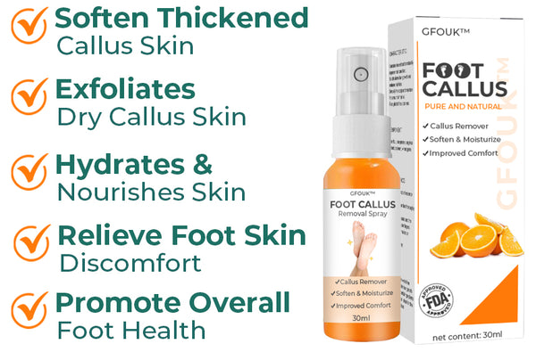 As a Dermatologist, I recommend this GFOUKâ„¢ Foot Callus Removal Spray to patients who have foot callus, pain, or other skin concerns on their feet. Our GFOUKTM Foot Callus Removal Spray, which includes a range of minerals, vitamins, and organic compounds, assists in softening callus and dry skin, making it easier to remove and preventing infections.