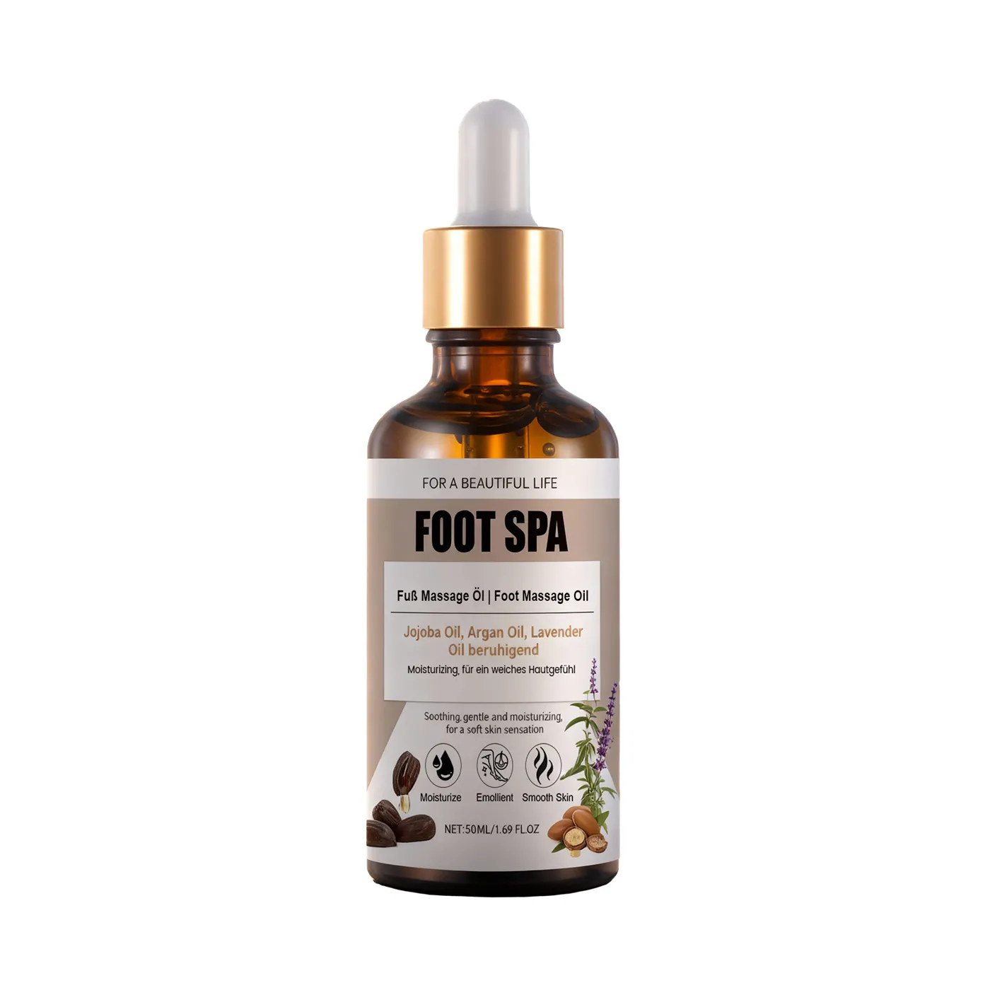 Foot Spa Massage Oil with jojoba, argan, and lavender oils nourishes and soothes dry feet, leaving them soft, smooth, and revitalized. Ideal for daily foot care.