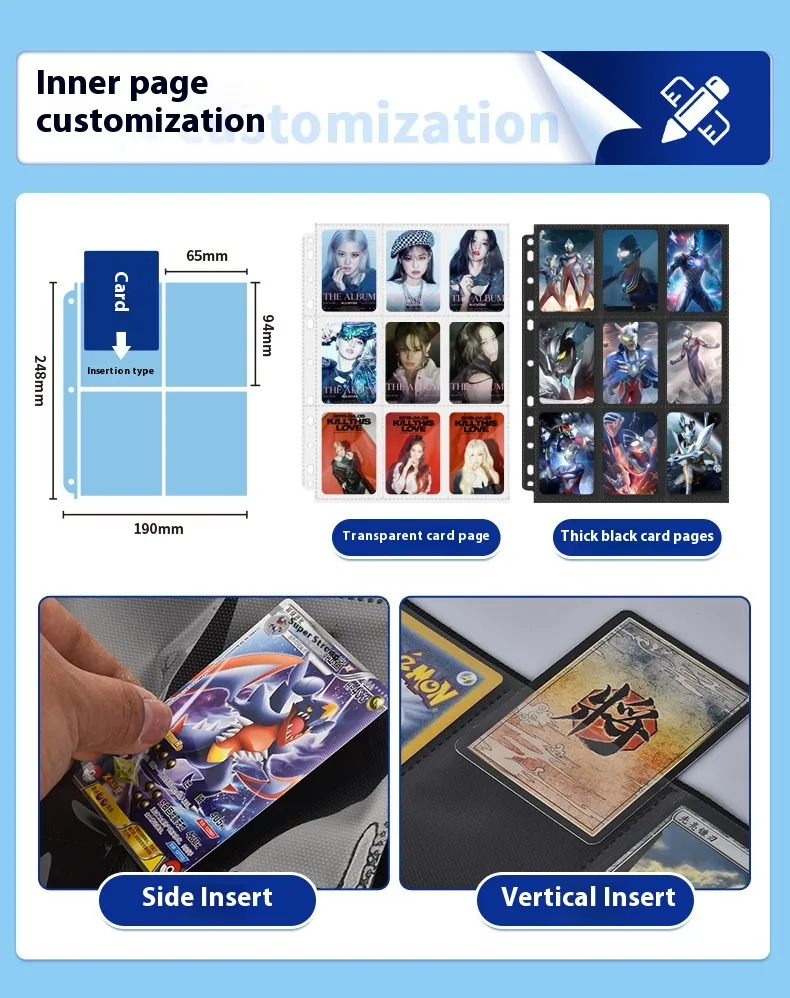 A standard binder typically holds 9-pocket pages and is the most common type of binder used by collectors. These binders are designed to hold a large number of cards in a compact, organized way. They come in a variety of sizes, with some holding up to 400 cards, making them ideal for collectors who have a mid-sized collection.
