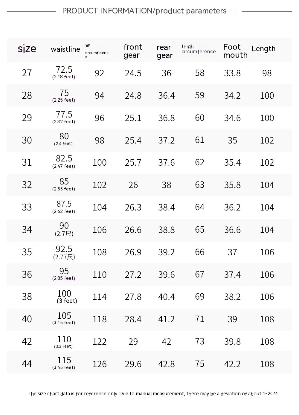 33/4XL, women's 34/5XL, women's 35/6XL, men's 27, men's 28, men's 29, men's 30, men's 31, men's 32, men 33, men 34, men 35, men 36, men 38,