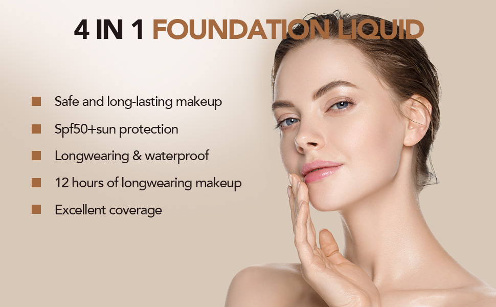 - 【4-IN-1 FOUNDATION】This Waterproof moisturizing light foundation Instantly mimics your skin tone and creates a uniform complexion without masking skin creating a illuminating silky finish.