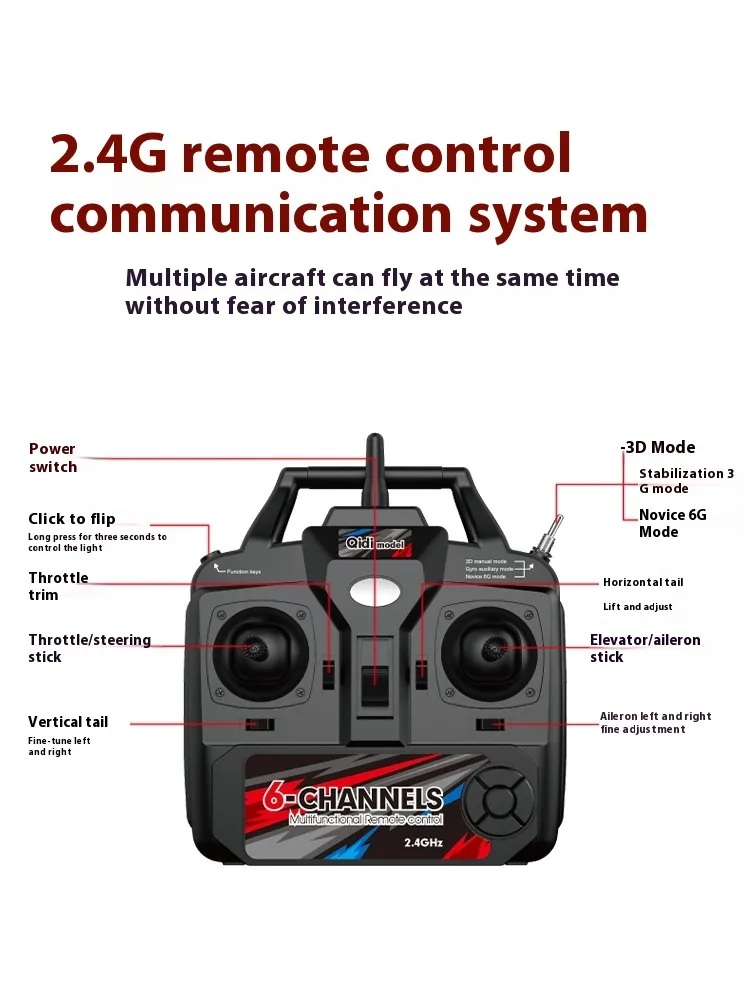 Features: New four channels, flight control system, automatic balance, Rise, Fall, turn left, turn right, left wing, right wing, front roll