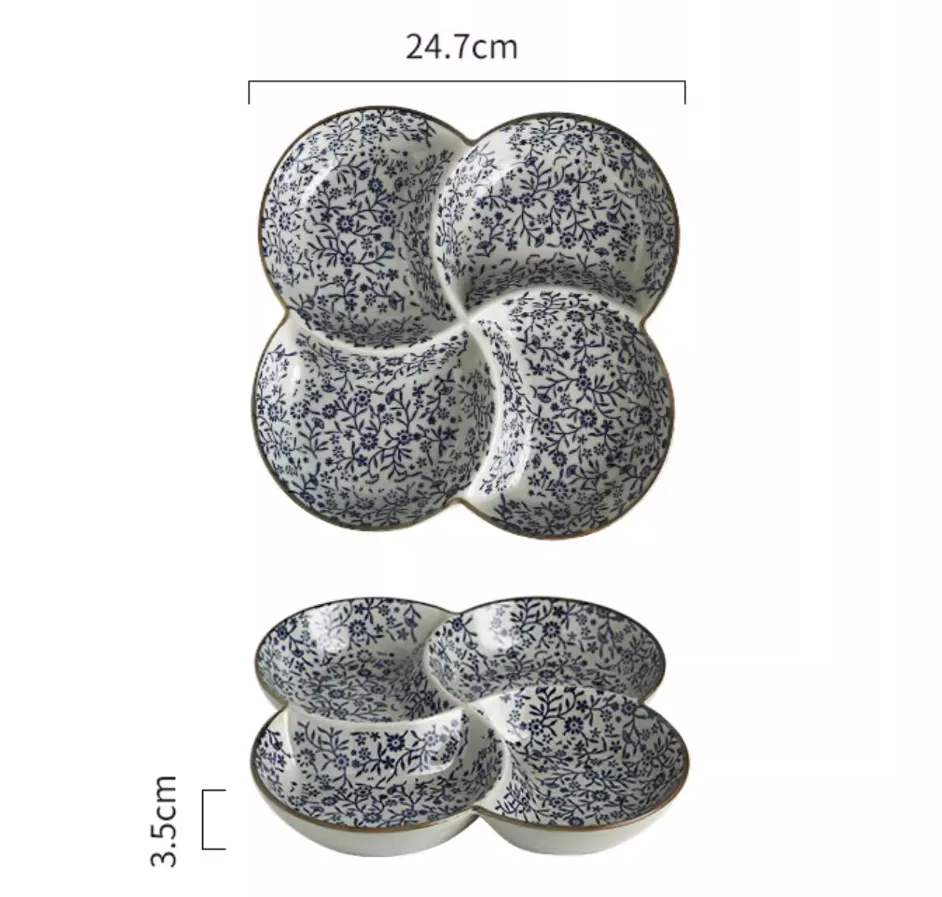 Four-grid Plate Cooking Retro Tableware Ceramic Fruit Platter