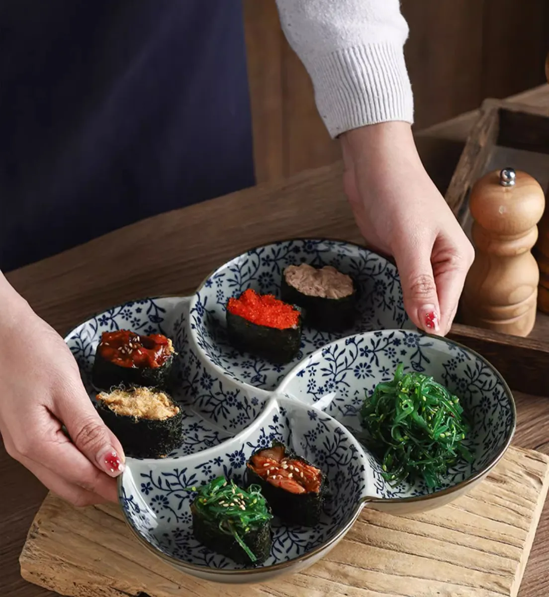 Color classification: 9.5 inches four grid plate auspicious flowers
