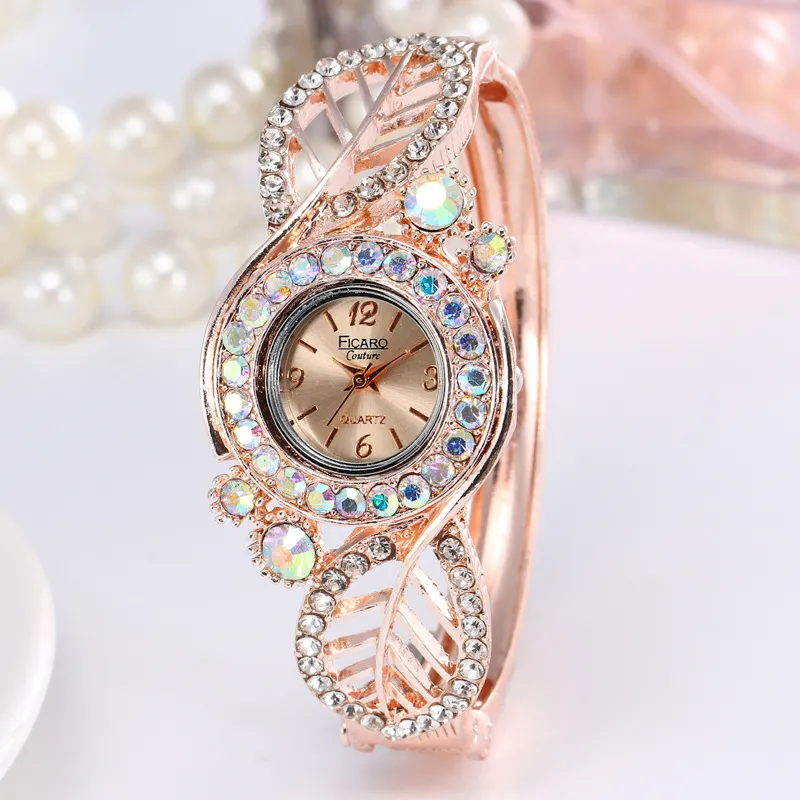 The four-leaf clover motif is the focal point of this stunning bracelet watch. Each leaf of the clover symbolizes faith, hope, love, and luck, making it not just an accessory but a meaningful piece of jewelry. The design is intricately crafted to highlight the beauty of the four-leaf clover, adding a touch of symbolism and charm to your timepiece.