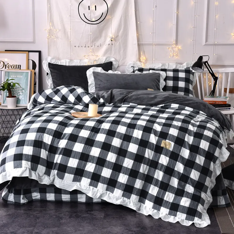 Upgrade your bedroom decor with the Four-Piece Lattice Bed Set, a stylish and comfortable bedding solution designed to create a cozy, inviting atmosphere. Featuring a timeless lattice pattern, this bedding set adds a touch of sophistication while offering unmatched softness and durability. Perfect for all seasons, it combines practicality with aesthetic appeal, making it an ideal choice for both everyday use and special occasions.
