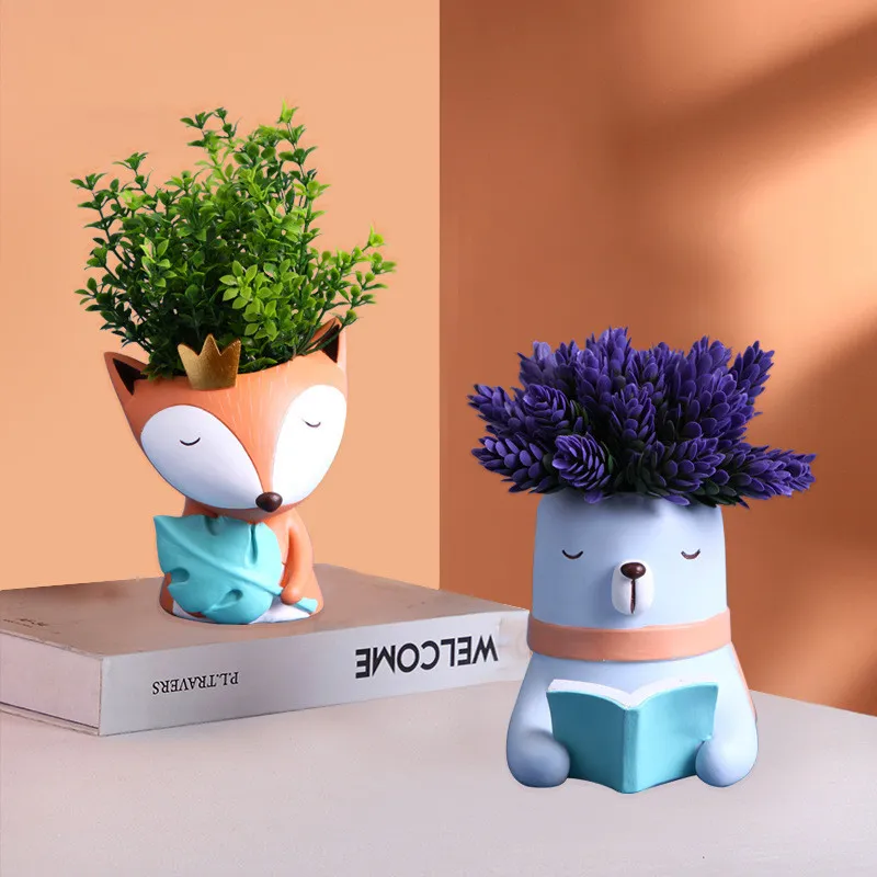 Fox Flowerpot Cartoon Rabbit Creative Home Nordic Light Luxury Decoration Decoration Living Room Pure Handmade Resin Crafts