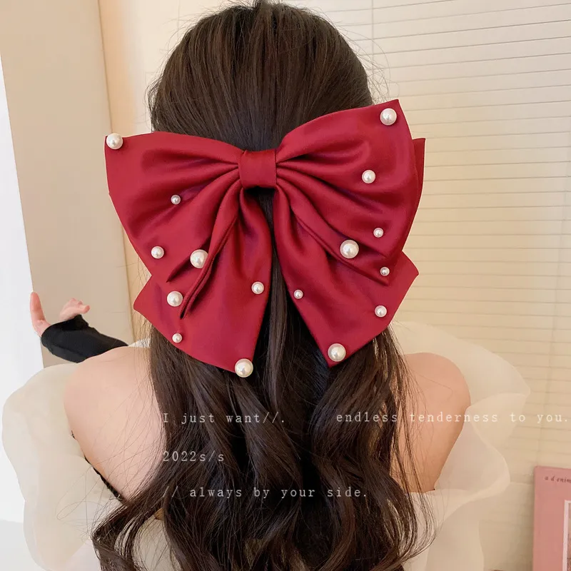 French Light Luxury Star Point Pearl Bow Net Red Headdress Hair Accessories