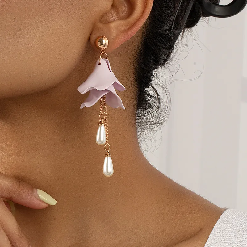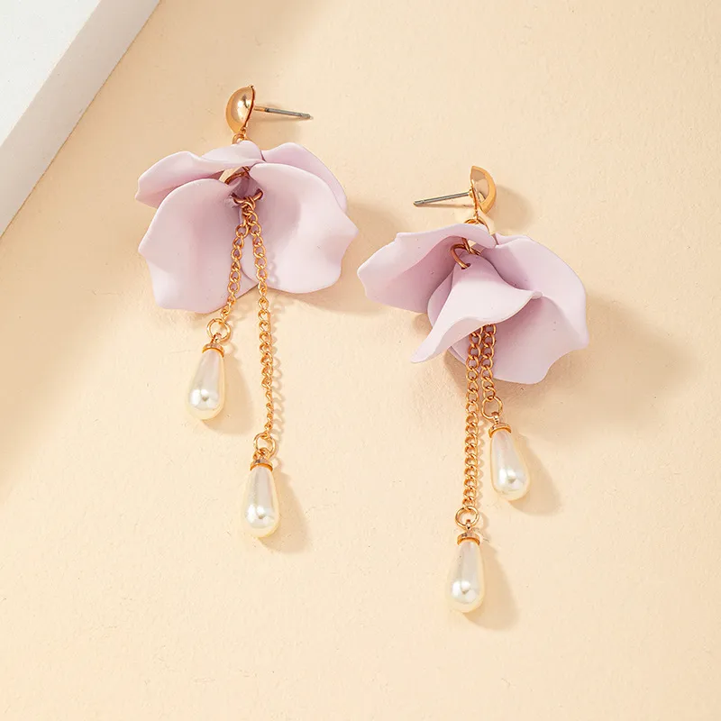 French Retro Fashion Sweet Purple Petal Earrings