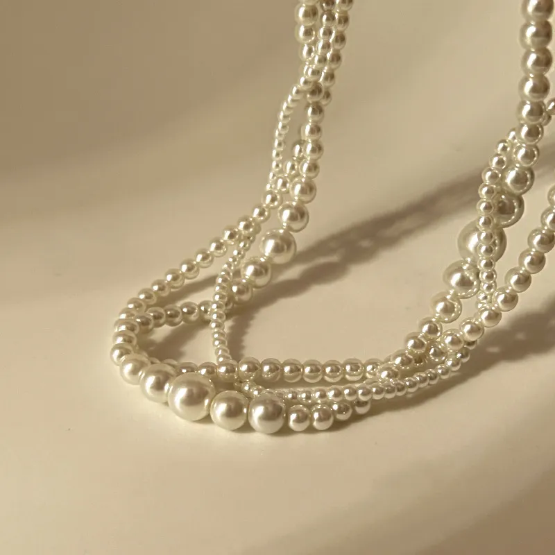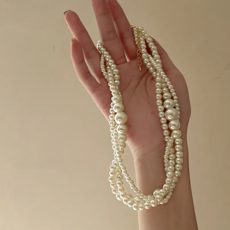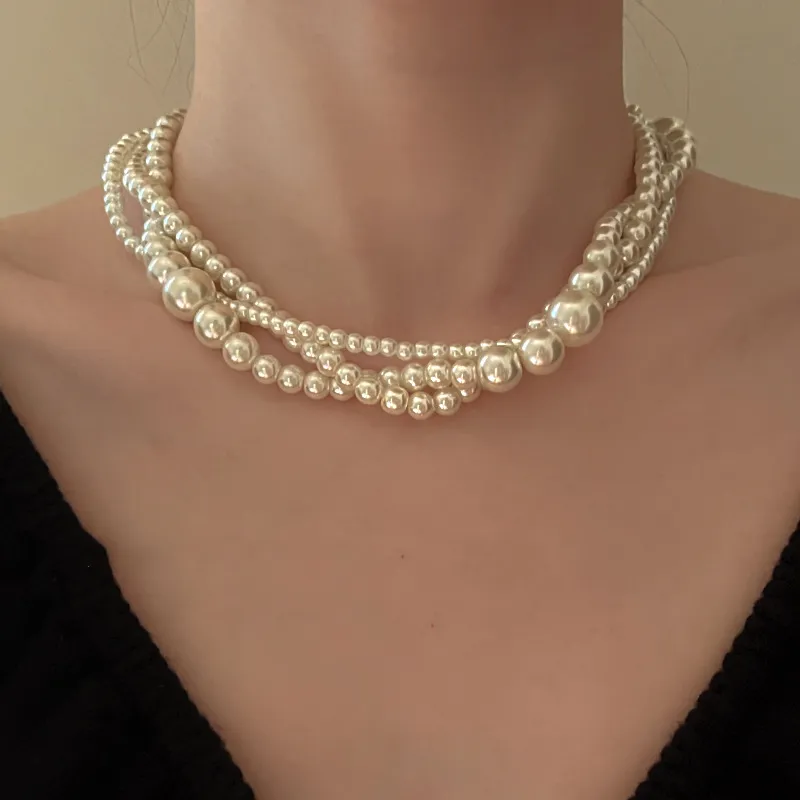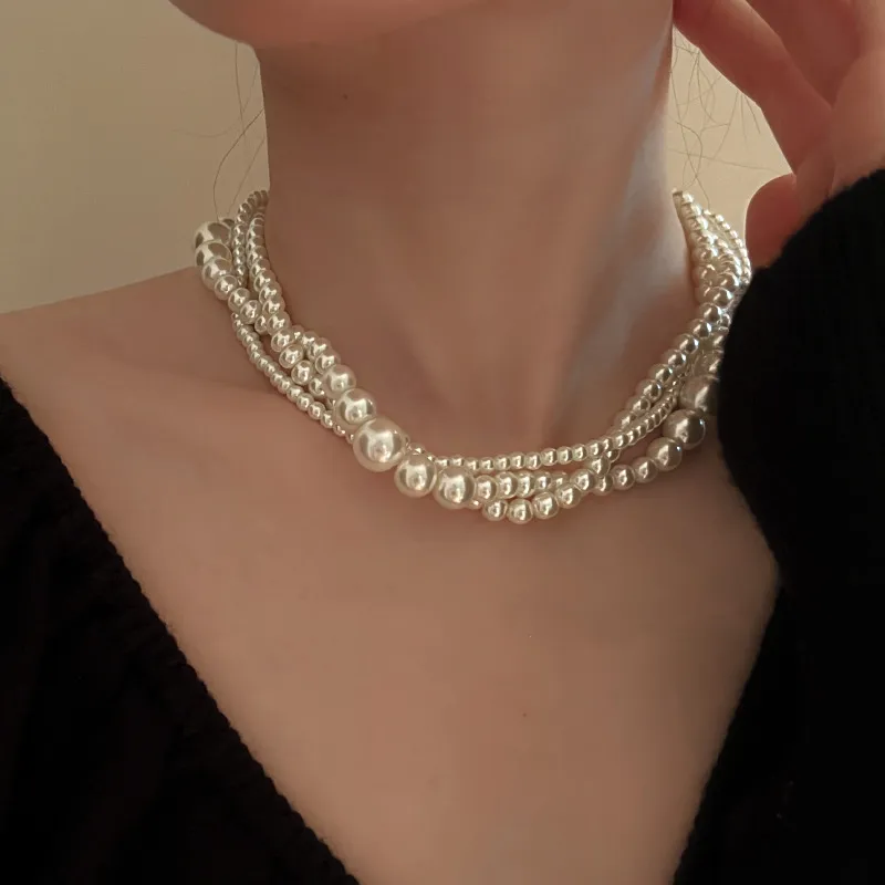 French Retro Multi-layer Pearl Necklace Light Luxury High Sense Special-interest Design