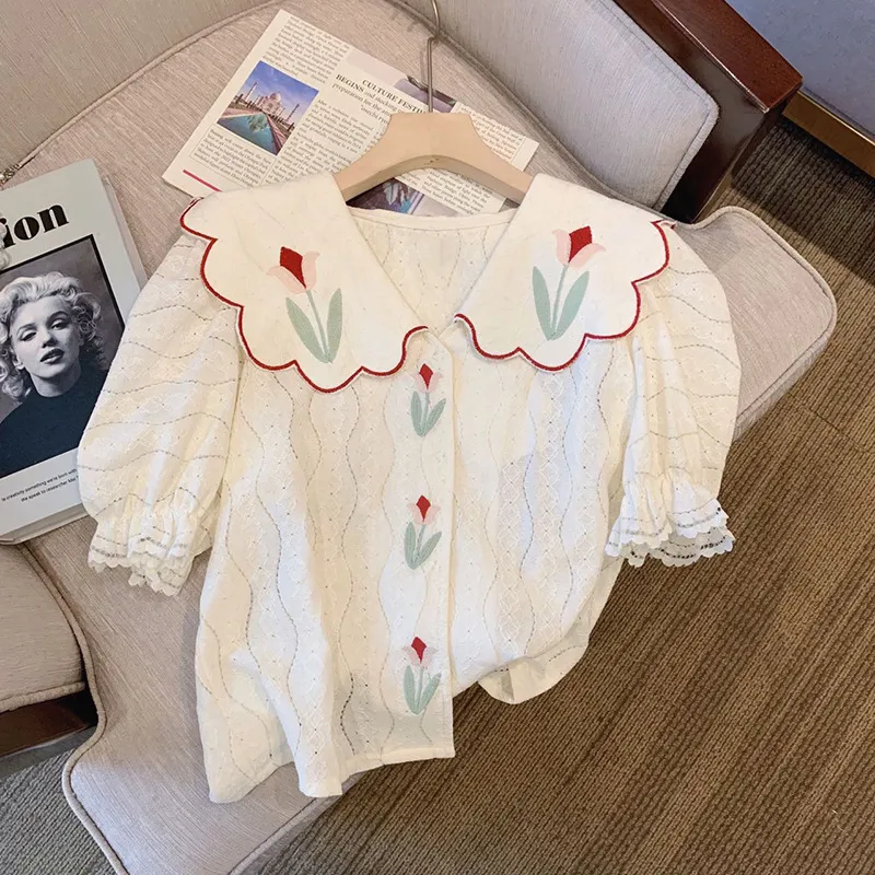Why You’ll Love the French Style Doll Collar Embroidered Printed Short Sleeve Shirt