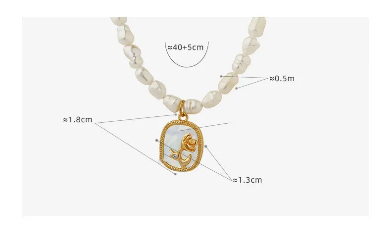 Fresh Water Pearl Chain Oval Brand Inlaid Zircon Color Shell Embossed Flower Necklace