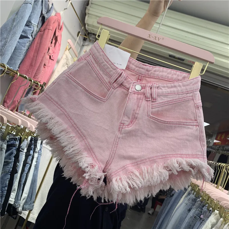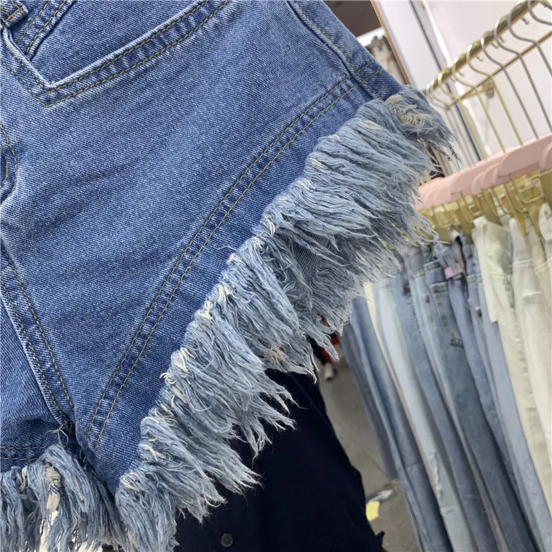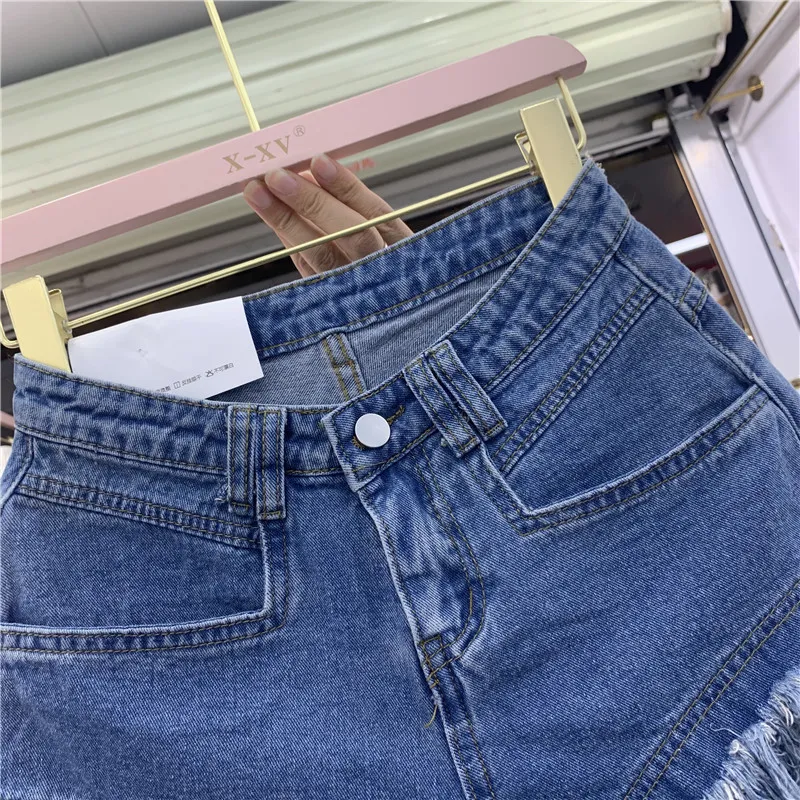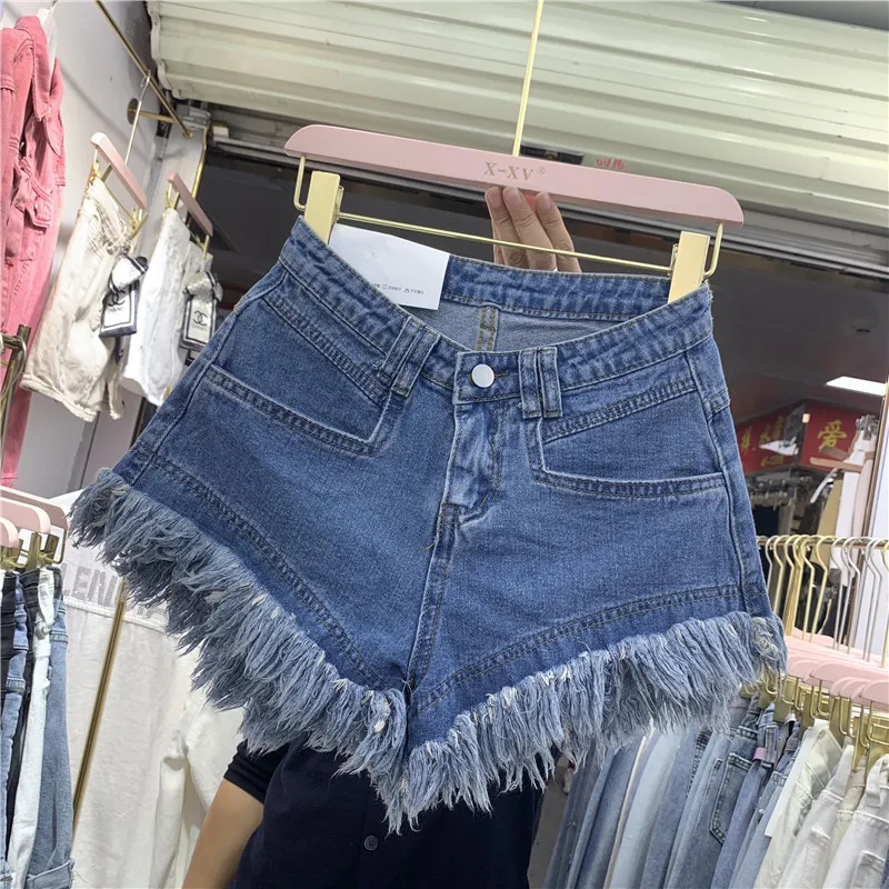 Fringed Frayed Denim Shorts Women Summer Thin High-waisted Wide-leg Pants