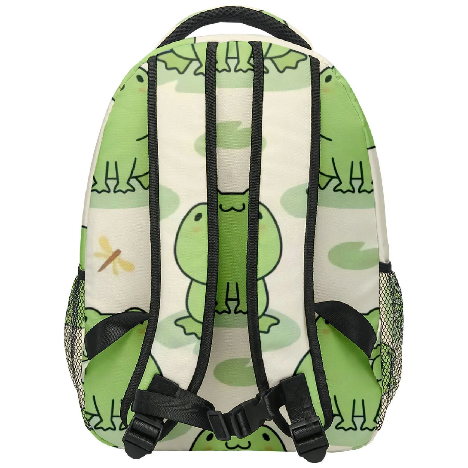 The standout feature of this backpack is its fun and eye-catching frog cartoon print. The vibrant green hues and animated details bring a