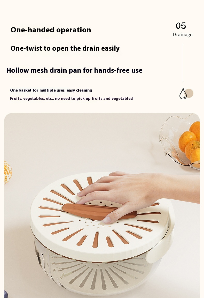 - Washing: Use the basket with the lid on to rinse fruits and vegetables thoroughly while preventing water splashes.