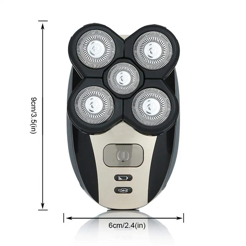 - 5 IN 1 Razor Head Set:Multifunctional electric head shaver for men with 5 replacement shaver heads: smooth texture, hair trimmer, nose hair trimmer, massage brush, cleaning brush.