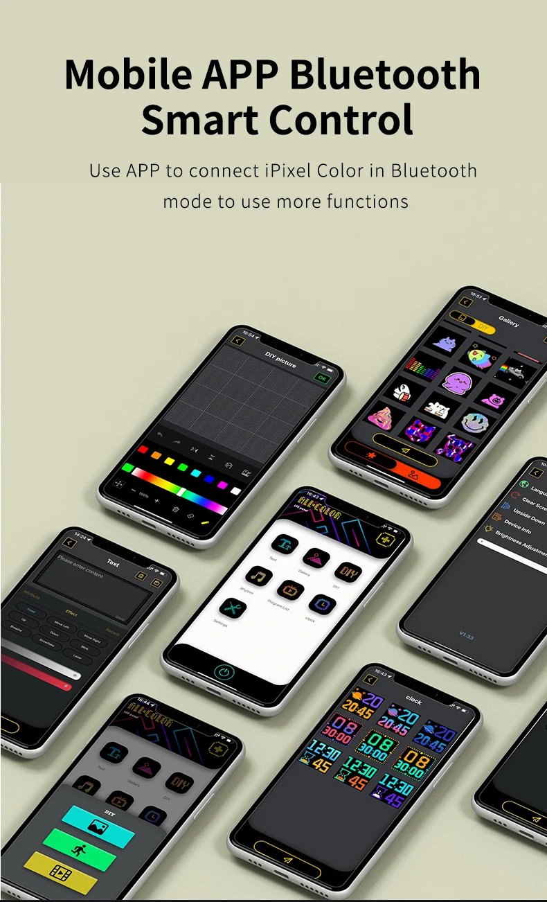 Design your very own personalized LED display with our DIY Bluetooth LED Display Screen. Whether you choose from our built-in animations and pre-set symbols or design your own animated GIFs or images, your display will be truly unique.