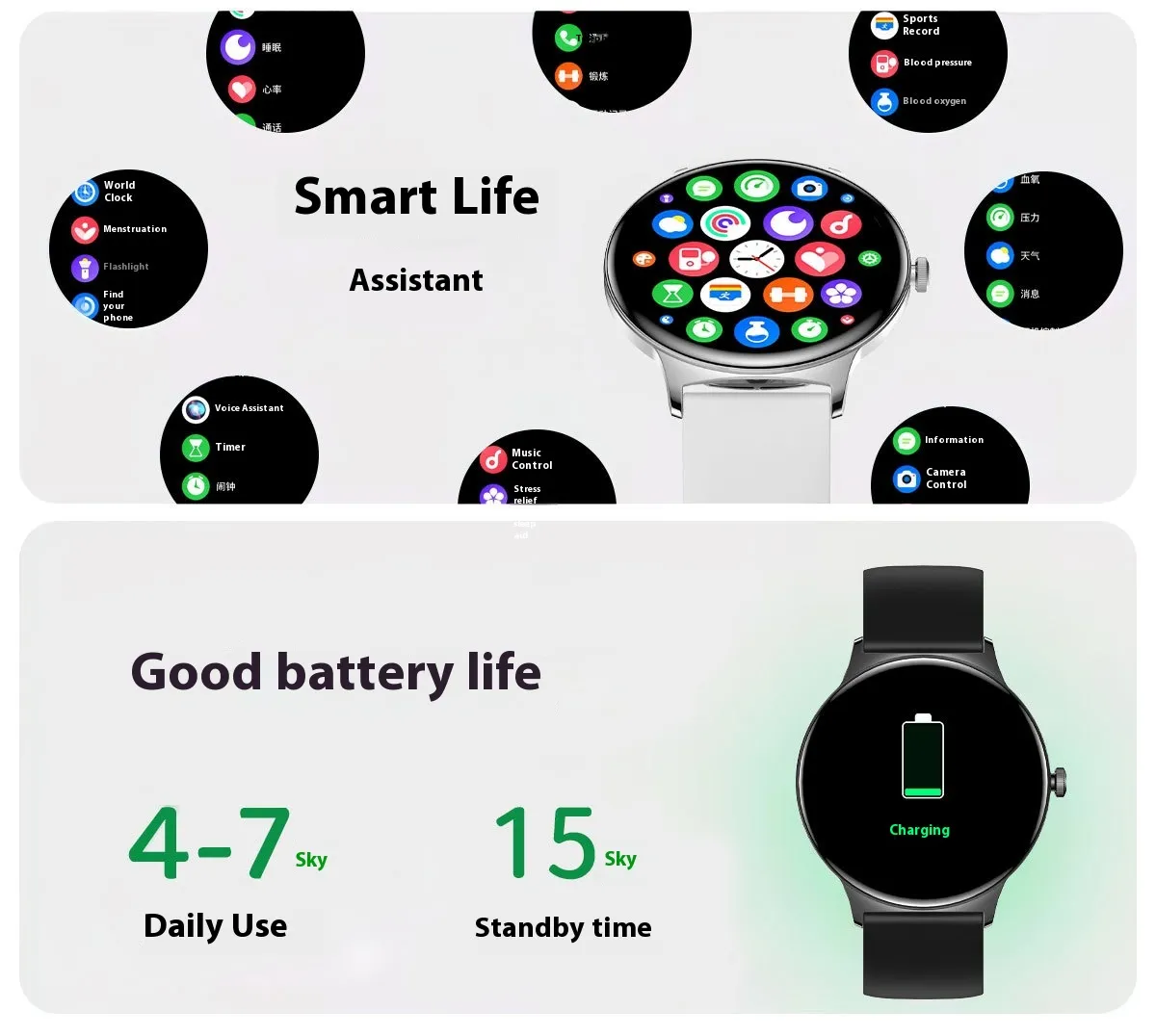 The smartwatch offers a sleek and modern design, with the added ability to customize the watch face to suit your personal style. Match your smartwatch with your mood or outfit, ensuring it complements your look every day.