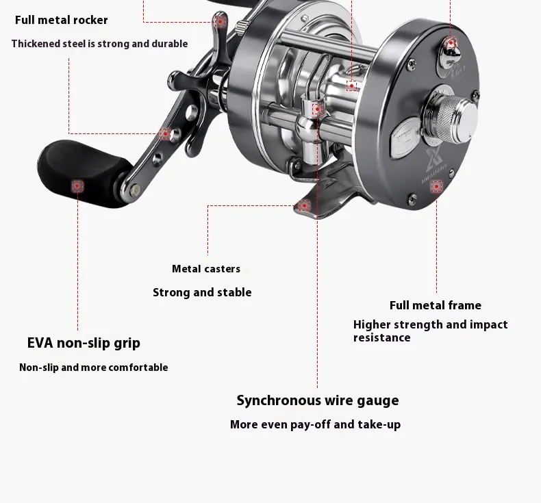 One of the standout features of the Full Metal Lure Fishing Wheel is its all-metal construction. The metal body ensures that this reel is tough and durable enough to withstand the harshest marine conditions. Whether you're fishing in saltwater or freshwater, the full-metal design ensures maximum strength and resistance to corrosion, which is essential when exposed to the elements for extended periods.