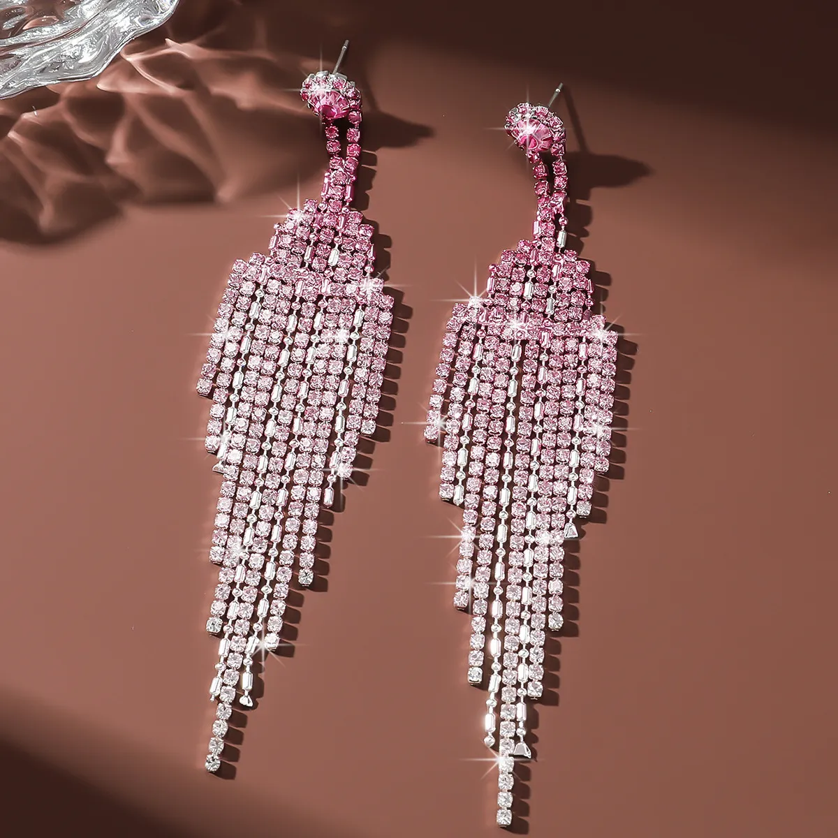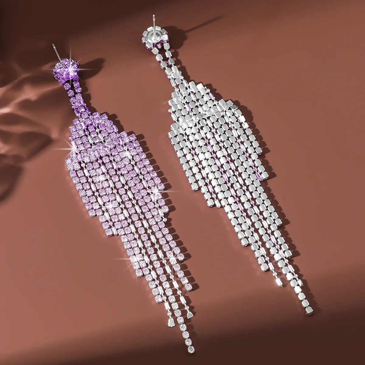 Elevate your style with our Full Rhinestone Tassel Earrings, a stunning accessory that blends high-grade materials with a unique design to offer an affordable luxury experience. Perfect for any occasion, these earrings are a statement of elegance and sophistication.
