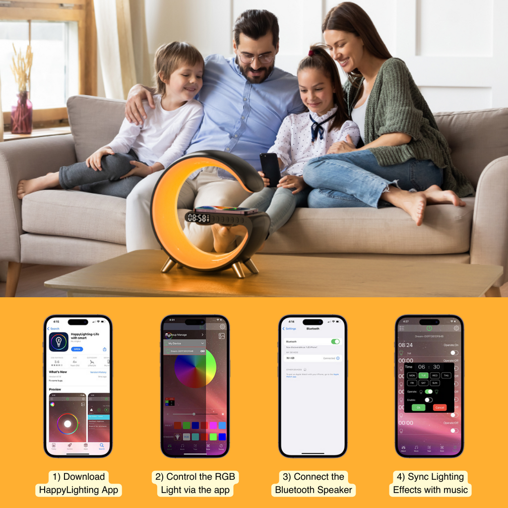 G Light Alarm Clock Mood Light Speaker Wireless Charger