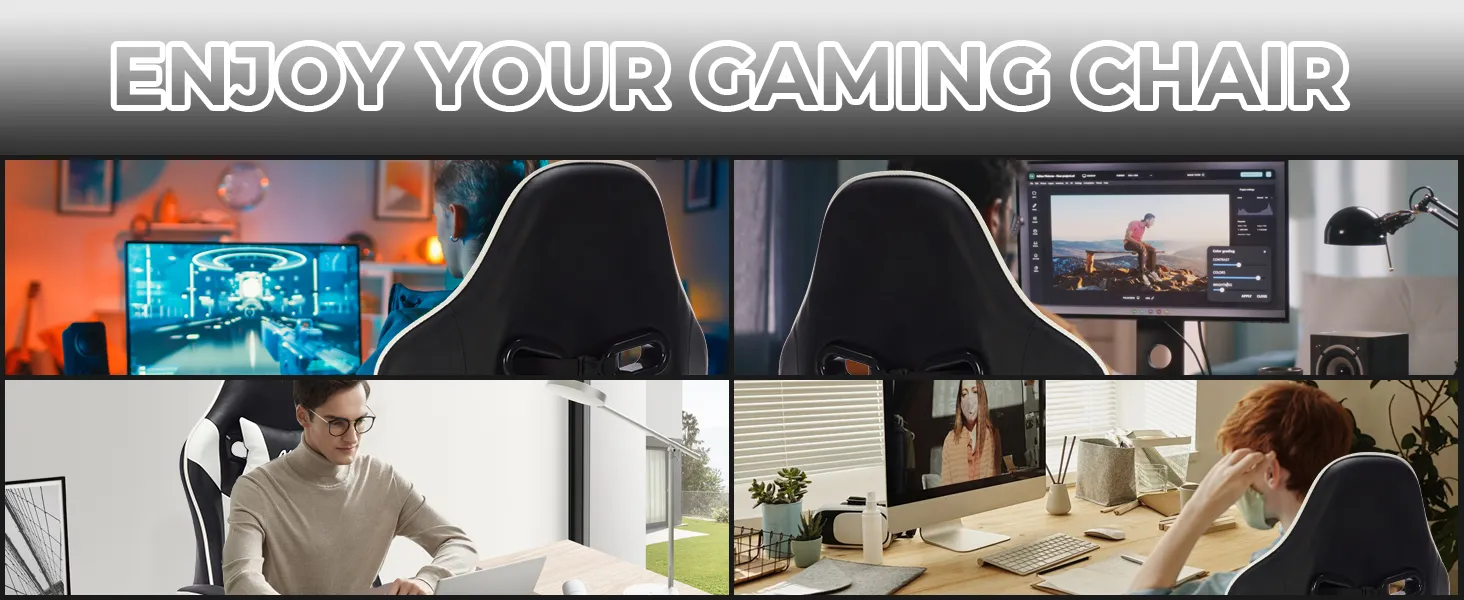 gaming, working from home, or even taking a break, this chair offers versatility and comfort. Its sleek black and white design is not only