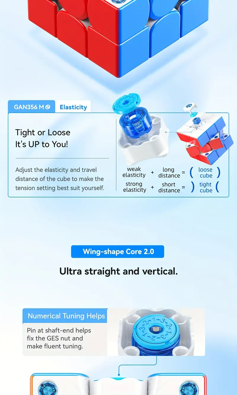 The GAN356 M E 3×3 cube supports learning in STEM-related areas such as pattern recognition, memory training, and algorithmic thinking. It is frequently used in classrooms and at home as an educational puzzle toy that encourages patience and problem-solving among students and children.