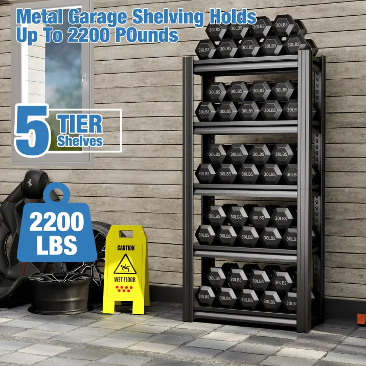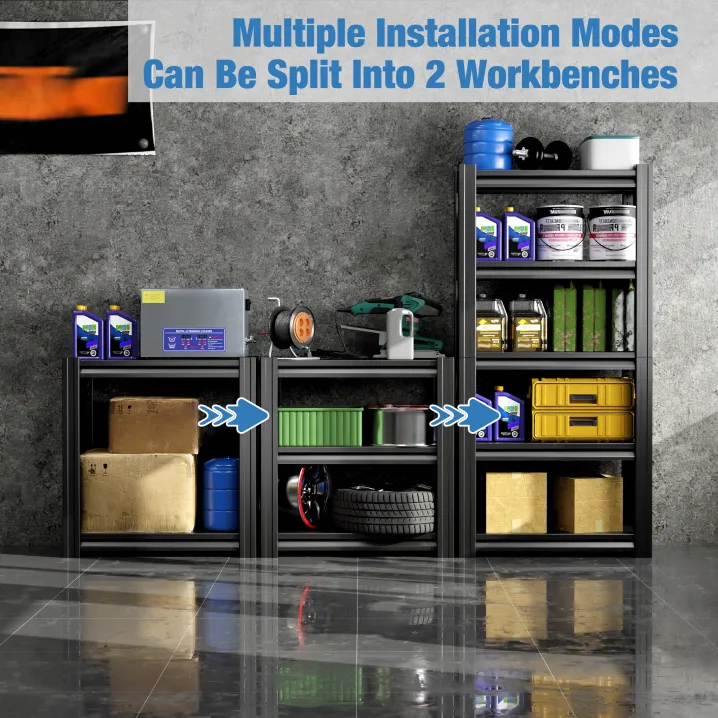 With 5 layers of storage space, you can organize your items into categories for easy access. Whether you need to store seasonal items, power tools, or heavy-duty equipment, these shelves will keep your belongings neatly arranged and easily accessible.Durable and Long-lasting
