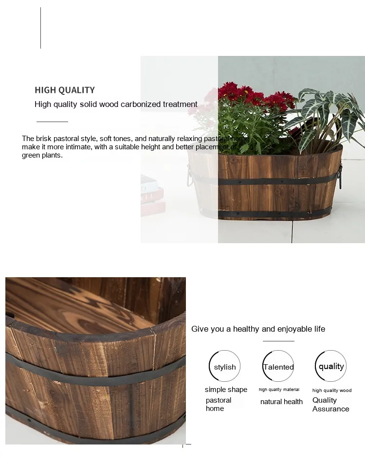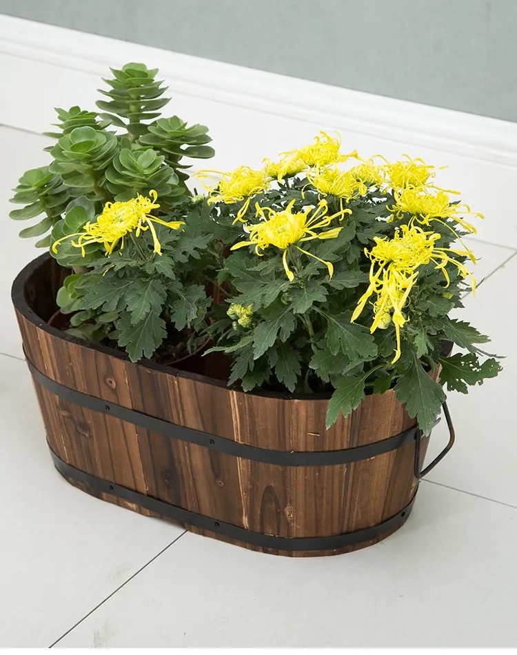 durable woods like cedar or oak, they are ideal for growing flowers and plants that thrive in a more organic environment. Wooden barrels can