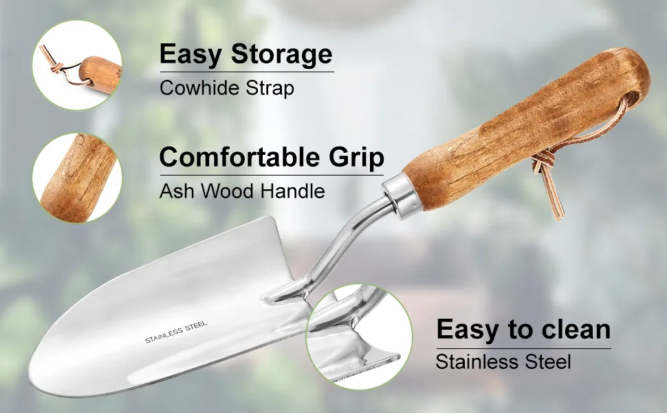 Each tool in this set is made with corrosion-resistant stainless steel, ensuring long-lasting sharpness and resilience. The stainless steel construction allows these tools to handle tough soil, roots, and outdoor conditions with ease. The smooth, polished wooden handles provide a comfortable, sturdy grip that minimizes hand fatigue during extended use, making gardening tasks easier and more enjoyable. The classic design and durable materials make this set both practical and visually appealing.