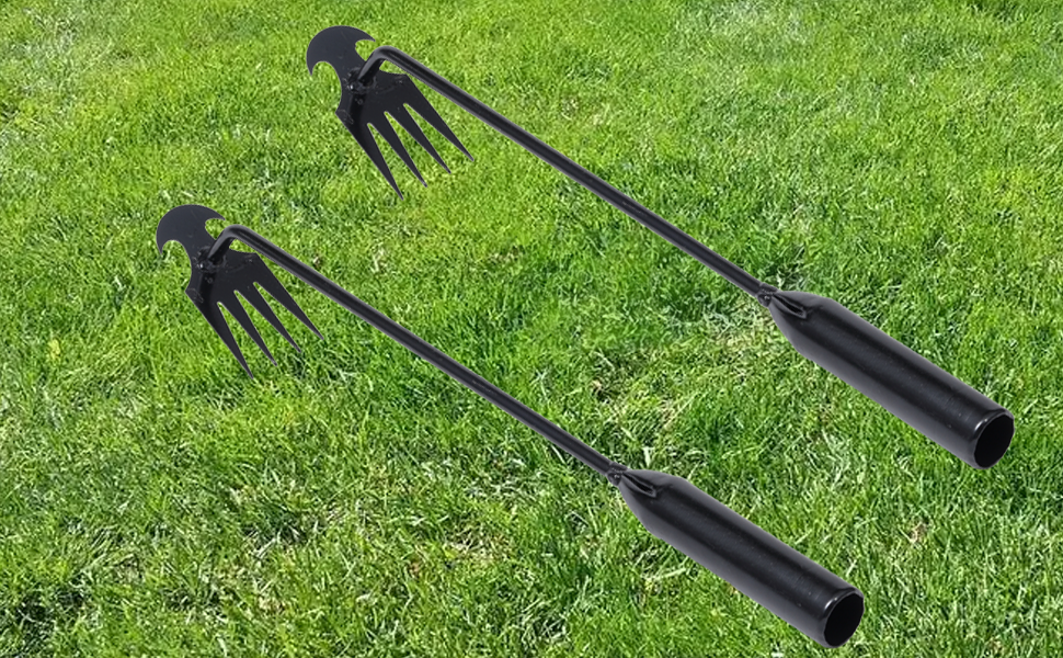 Durable Material: The four-tooth uprooting weeding tool is made of high-quality anti-rust manganese steel, with high hardness and durability. The 8 mm steel bars has high impact resistance and tensile strength, not easy to deform or break. The polished surface is non-stick.