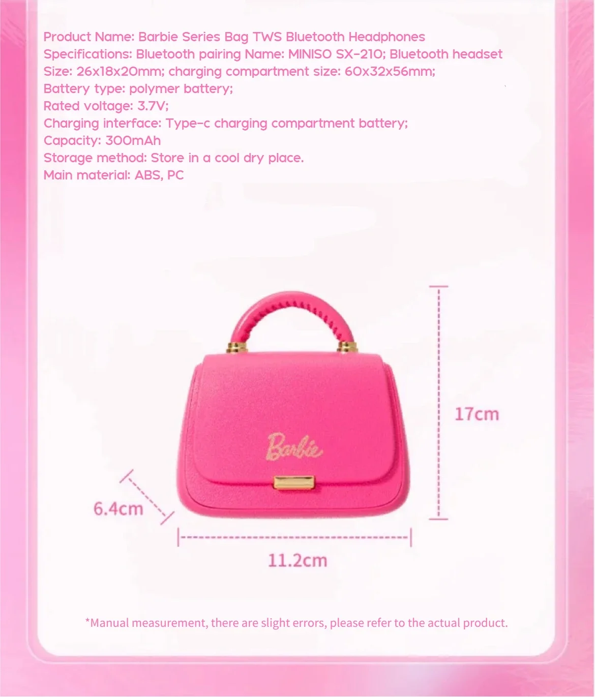Genuine MINISO Barbie Series TWS Bluetooth Headphones Pink Cute Creative Handbag Shape In-Ear Earplugs, Ideal Girls Holiday Gift