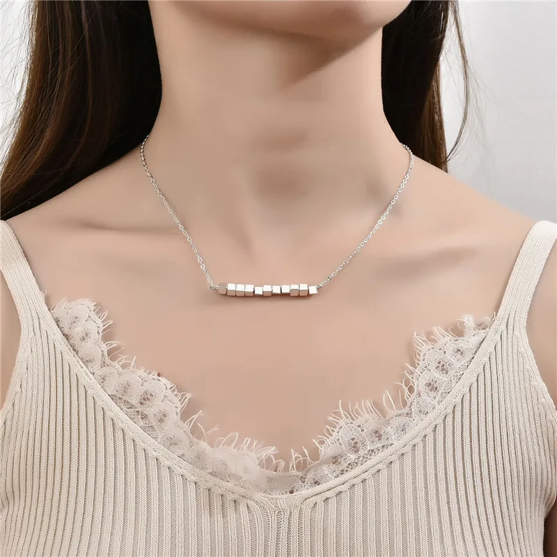 Geometric Square Block Beaded Pendant Necklace