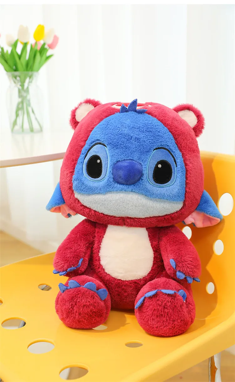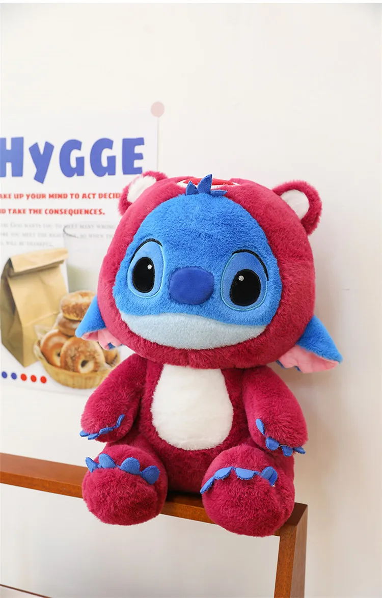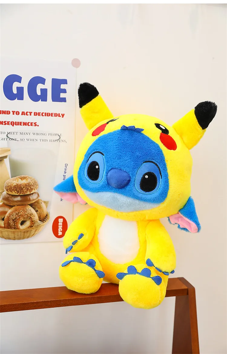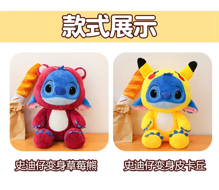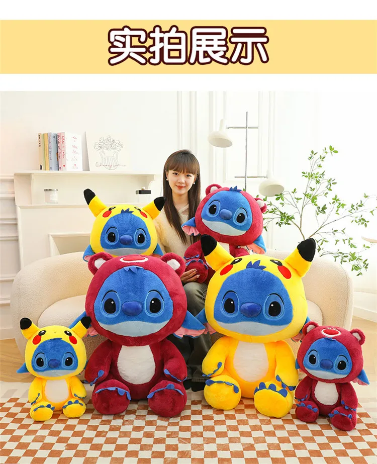 - Design: The plush doll features a unique fusion of Stitch and Pikachu, incorporating their iconic characteristics into one cuddly design. The addition of a strawberry bear element adds a whimsical touch, making it stand out in any collection.