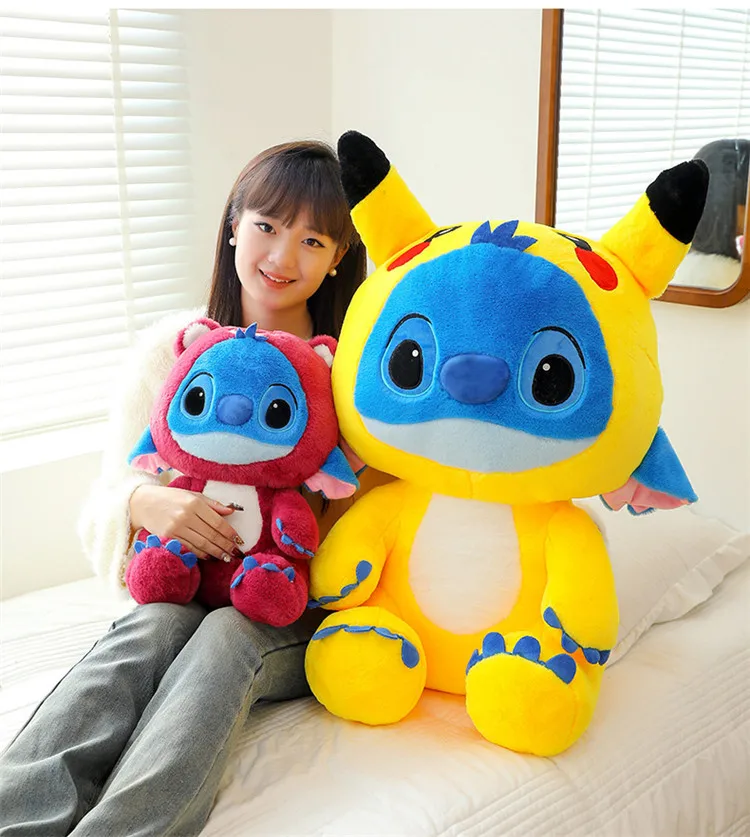 Giant Size Plush Stitch Pikachu Doll Soft Stuffed Animal Pillow, Strawberry Bear Plush Toys, Perfect Gift for All Ages