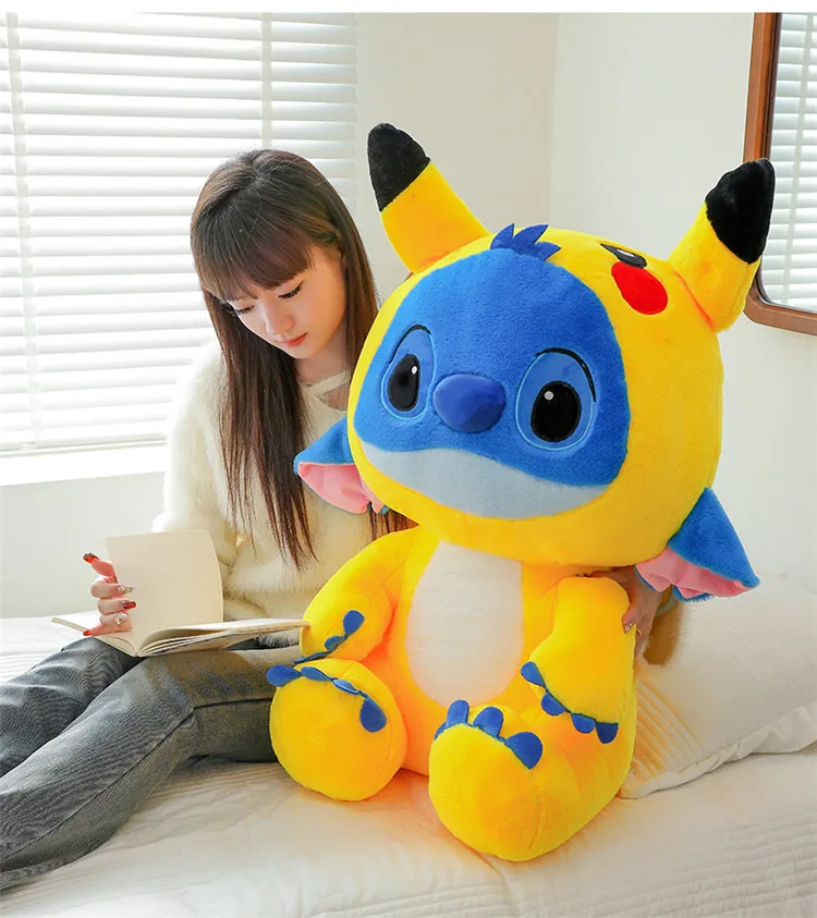 Meet the ultimate cuddle buddy: the Giant Size Plush Stitch Pikachu Doll. This oversized, soft stuffed animal pillow brings together the charm of beloved characters with an adorable strawberry bear twist. Perfect for decorating your space, providing comfort, or giving as a special gift, this plush toy promises endless hugs and smiles.