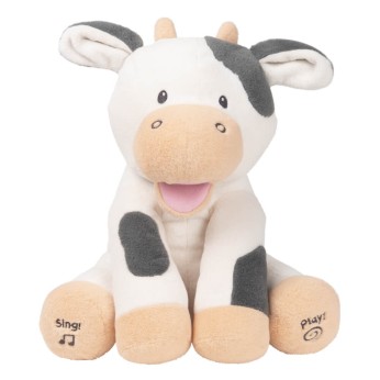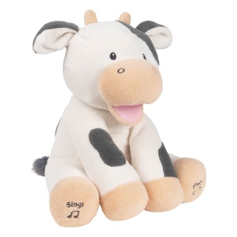 Meet Buttermilk the Cow, the all new friendly farm animal who has two interactive play modes to engage baby. In song mode, Buttermilk sings along to Old MacDonald Had a Farm in a cute child's voice with the mouth moves and ears wiggle to the rhythm! In play mode, Buttermilk says fun interactive phrases to teach little ones all about animals and their sounds! The animated plush toy also features volume control. 3 x AA batteries included. Surface washable.