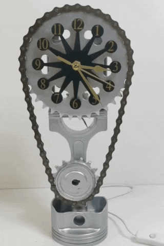 The chain clock features a genuine used piston, metal chain, and high-quality ABS parts, combining durability with a unique, industrial