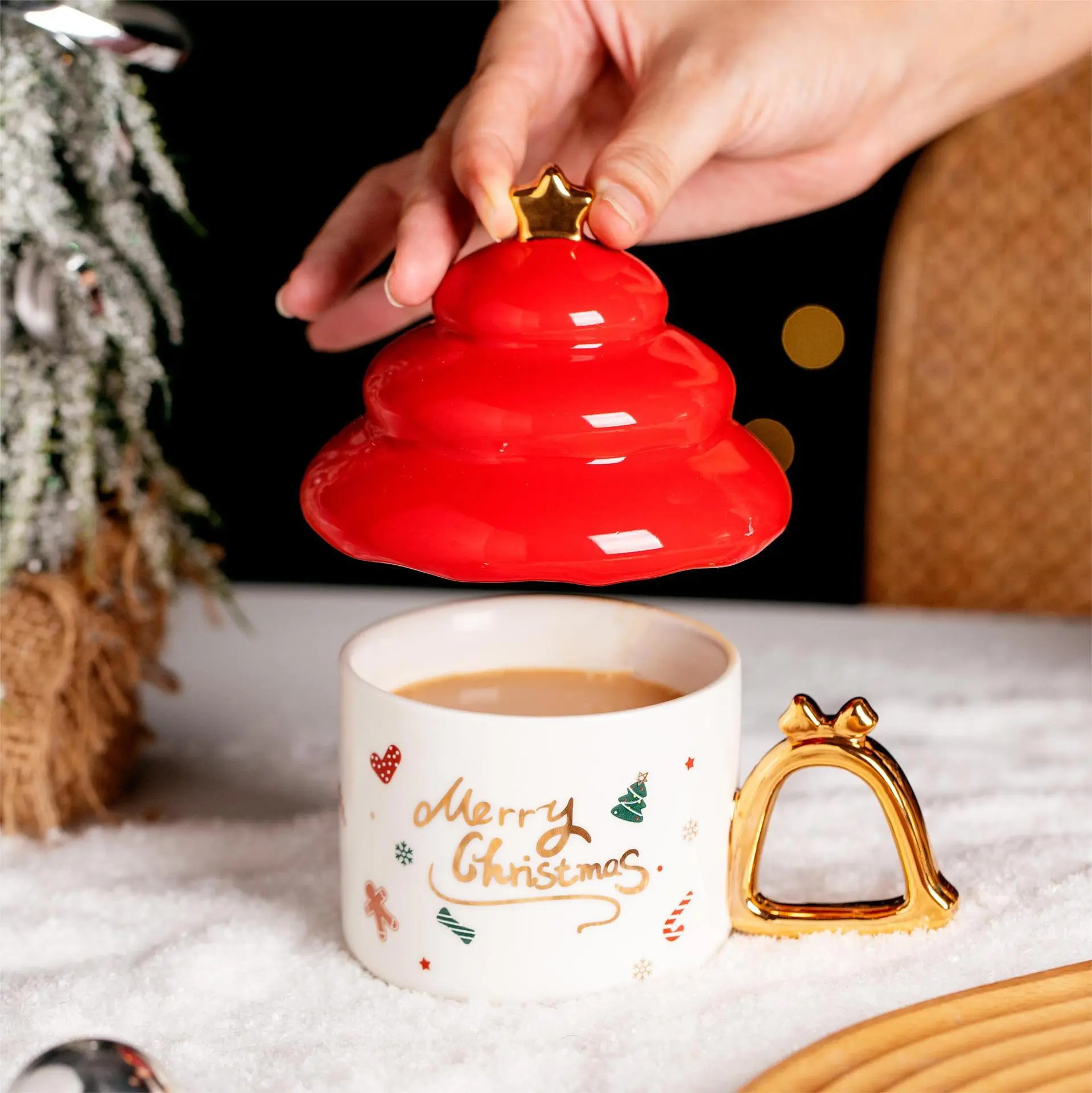 Gilt Christmas Tree Shaped Ceramic Mug With Lid