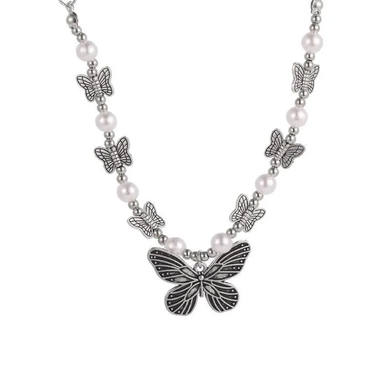 Color: xz460 - antique pearl butterfly necklace