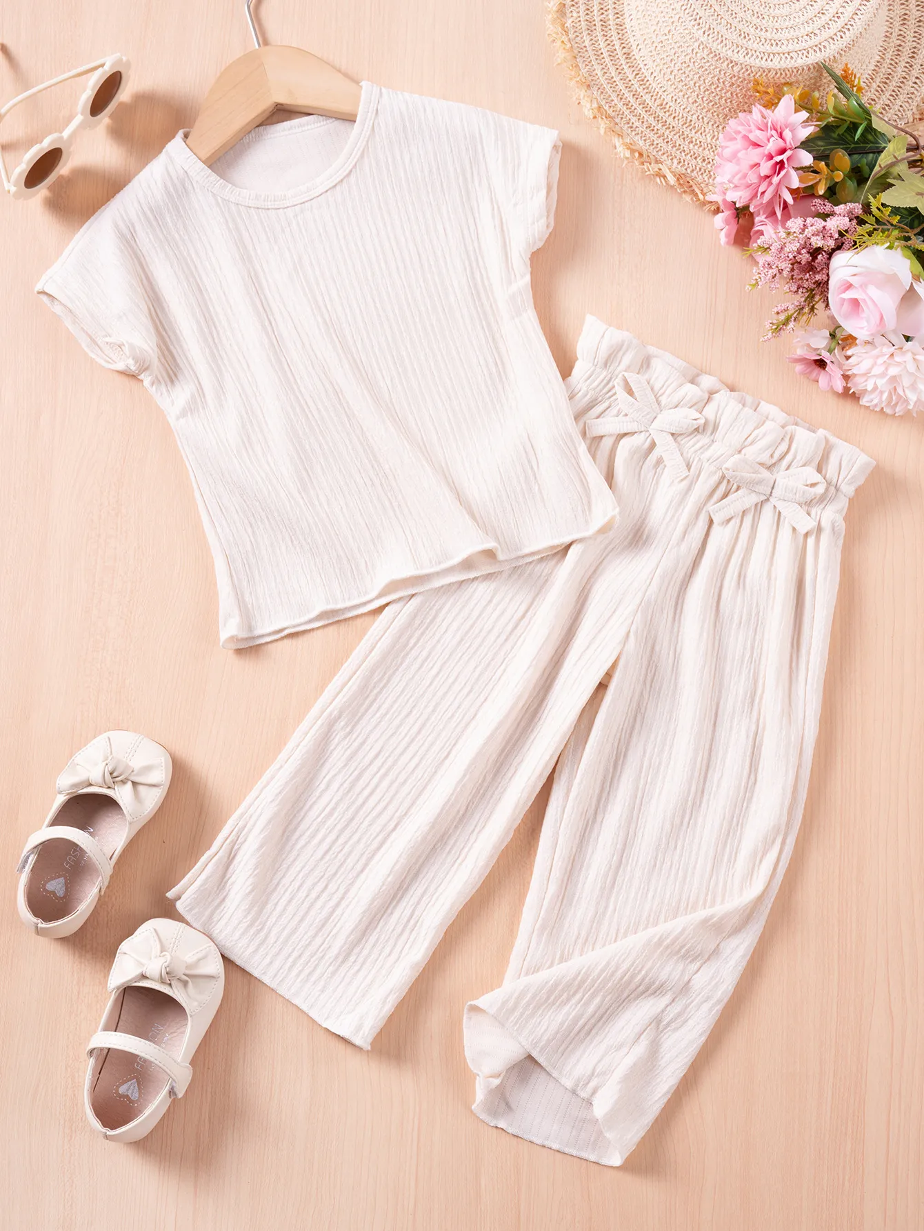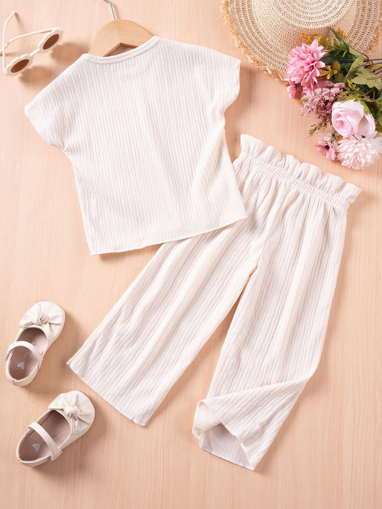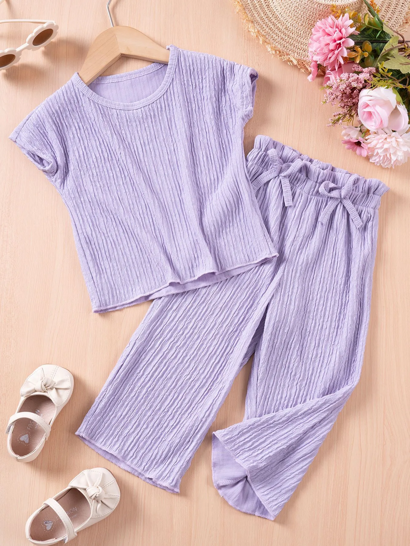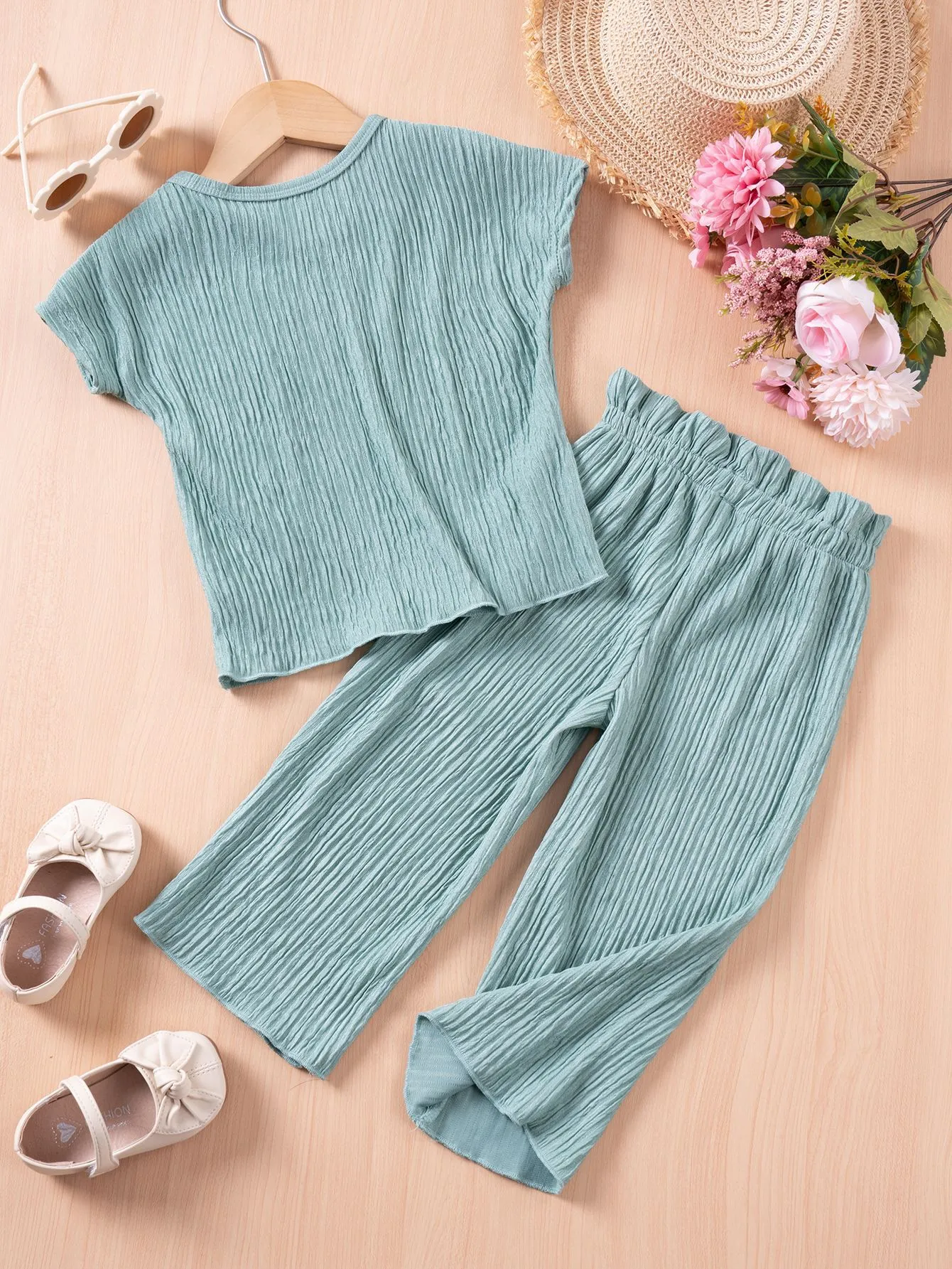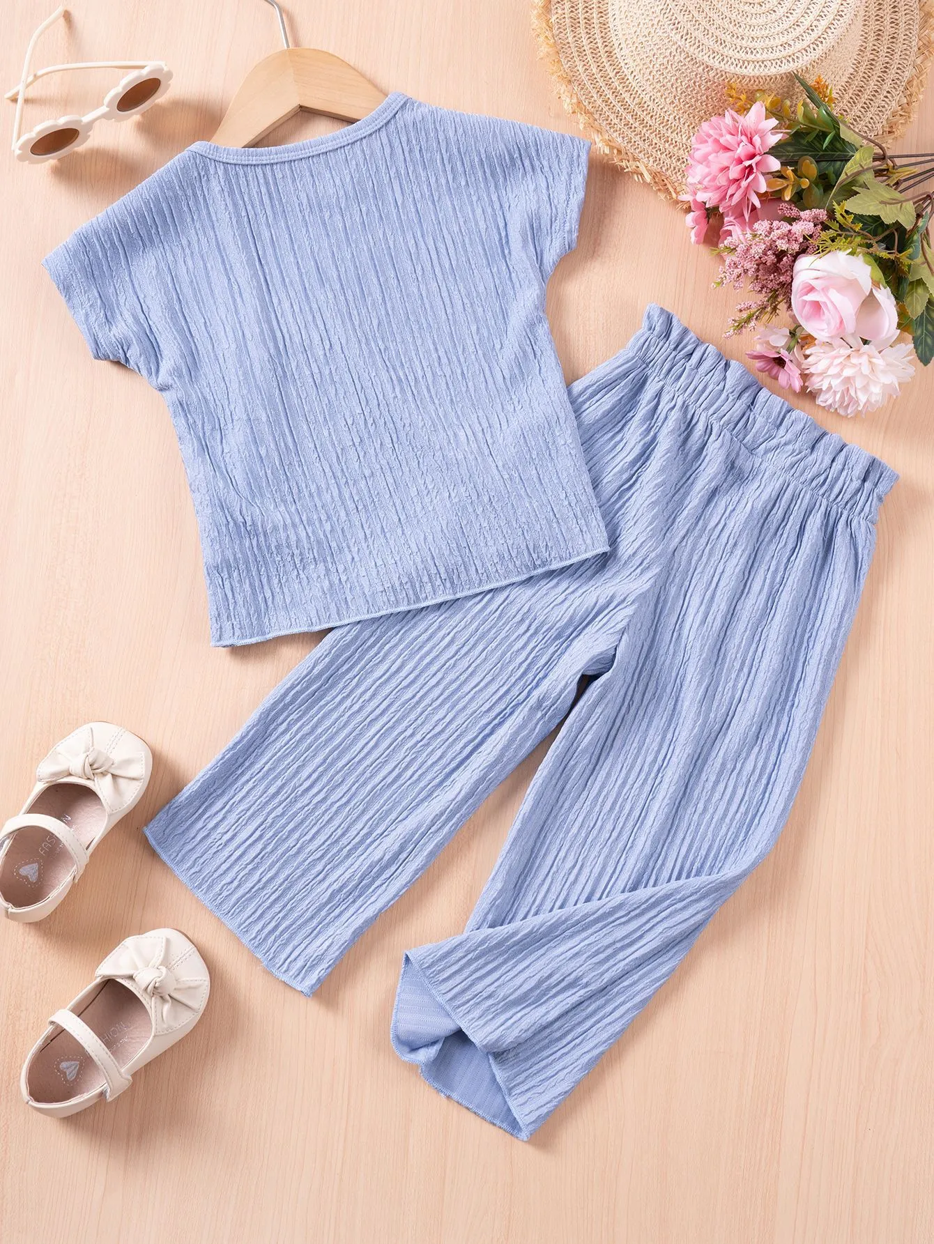 Girls Casual Style Solid Color Short Sleeve Trousers Suit – Chic & Comfortable for All Occasions