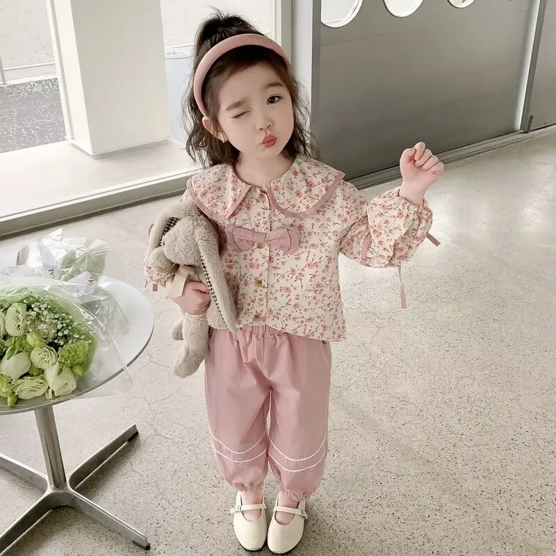 Girls' Floral Bow Two-Piece Set: Stylish, Comfortable, and Perfect for Every Occasion