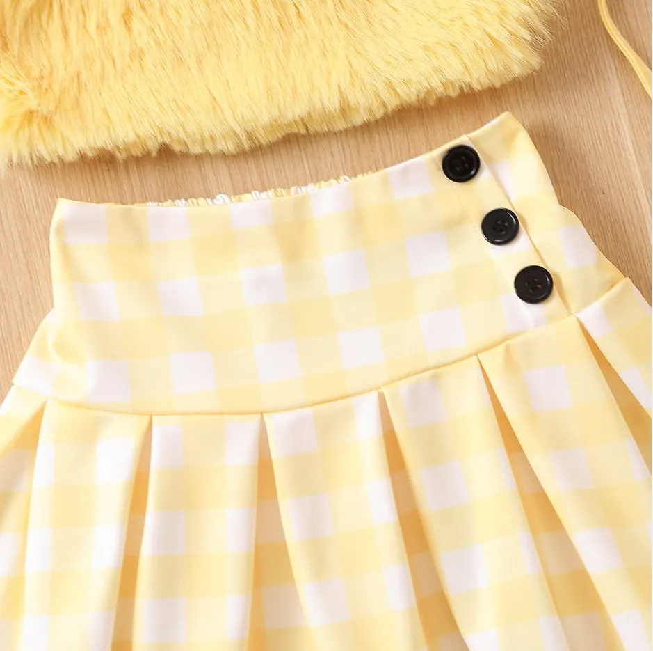 Add a touch of elegance and playfulness to your little one’s wardrobe with the Girls' Fur Sling Solid Color Fur Button Pleated Skirt Bag. This fashionable set blends soft fur details with a pleated skirt design, making it a perfect outfit for parties, birthdays, and seasonal outings.