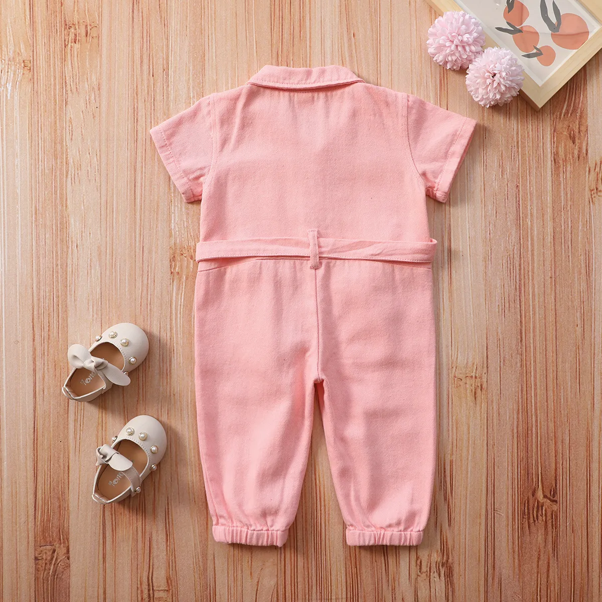 The Girls' Korean-Style Lapel Jumpsuit is designed with an easy-to-wear fit. The jumpsuit features an elastic waistband for a snug, comfortable fit, while still providing flexibility for movement. The buttons on the front make it easy to slip on and off, ensuring dressing your little one is a breeze. The lapel collar adds a stylish touch, while the overall cut of the jumpsuit provides plenty of room for your girl to play and move with ease.