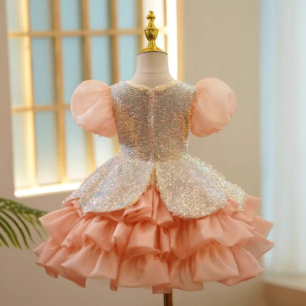 Make your little girl feel like royalty with the Girls Pure Color Sequins Puff Sleeve Princess Dress. Designed with shimmering sequins and charming puff sleeves, this princess dress adds sparkle and elegance to birthdays, parties, holidays, or special occasions.