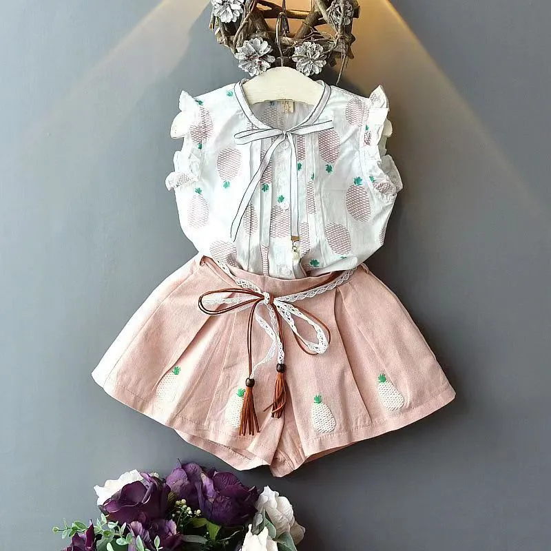 Girls' Sleeveless Blouse Shorts Two-piece Set