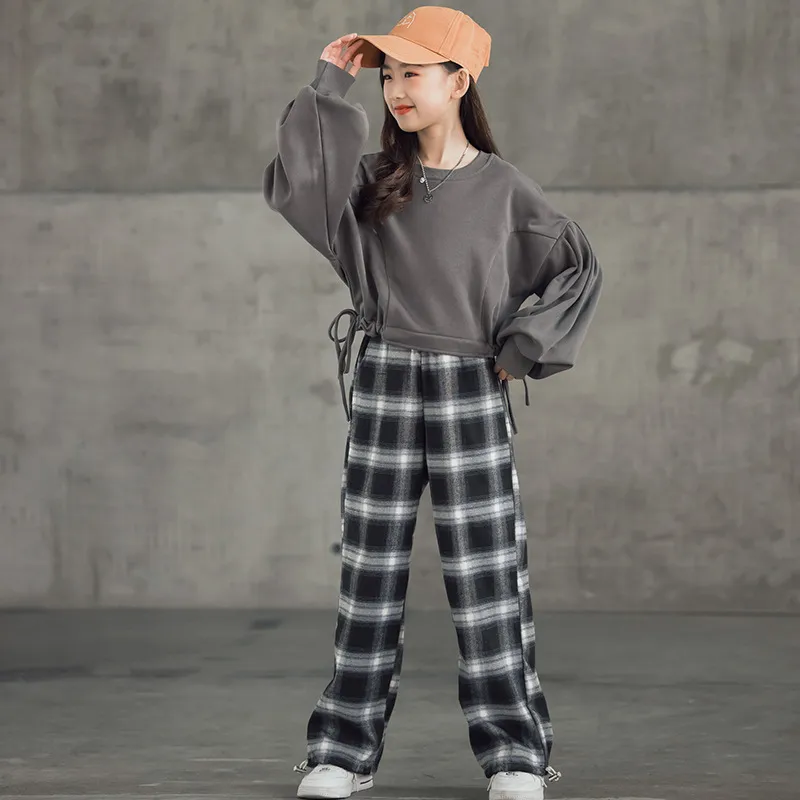 Girls' Suits Western Style Korean Children's Clothing Trendy Plaid Trousers Big Kids